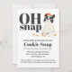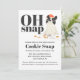 This Cookie Exchange invitation will make your guests smile. This design features a cute little illustration of a puppy caught eating Santa's cookies and the words "Oh Snap". Add all of your essential information on the front and your Cookie Swap Instructions on the back. You can leave the back blank if you prefer by simply deleting the text in the Personalise this template section. Make sure to add envelopes to your order if you need them as they are optional on this budget version.