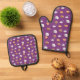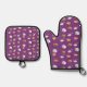 Cookies and milk on purple oven mitt & pot holder set