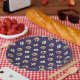 Cookies on dark purple, with chocolate crinkle cookies and pet paw print cookies