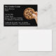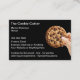 Cookie theme business cards design template created with a hand holding a delicious perfect chocolate chip cookie in the background and simple layout of editable text you can personalise online.