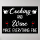 Cooking And Wine Make Everything Fine. This funny quote accessory is a great gift for men & women who love to cook in the kitchen, and maybe have a drink while they’re cooking! Also perfect for a chef or restaurant worker. If you’re a home cook & wine lover, love the culinary arts, and love to prepare delicious food on the stove or in the oven, then this design is for you.
