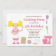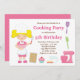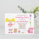 This cute cooking and baking birthday party invitation is perfect for a birthday party, or anytime. Features a cute blonde girl cooking in the kitchen with an apron and chef's hat!