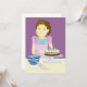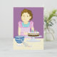 Cook in retro apron with bowl, whisk and cake on cakestand Room to add words to personalise eg. Cooking Class