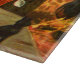 A beautiful vintage glass cutting featuring a witch cooking for devils and pumpkin characters.