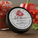Modern script Homemade hot sauce label with a red sauce stain background design with elegant calligraphy font, space for your ingredients, and other details. Your Brand name with a statement made with love by (your name).