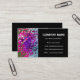 A stylish business card with an abstract pattern of swirls in shades of blue, bright pink and white, with white lettering on a black background. Ready for you to customize with your own details.