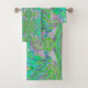 This Cool Colourful Bath Towel Set features a Cool Abstract Chartreuse and Blue Groovy Retro with Purple, Lime Green, Turquoise, Lavender, Aqua and Magenta Accents. The result is a colourful, groovy, psychedelic, boho style hippie painting that you will love!