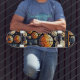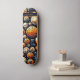 Hit the skate park with this bold, futuristic design that features intricate circular motifs in shades of orange, white and grey on a navy-blue background create an abstract mosaic-like effect. A subtle nameplate was added at the top for personalisation.