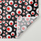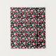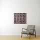 This wall tapestry has a cool abstract geometric pattern of vibrant red circles inside larger white circles on a black background.