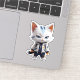 A Sticker with this charming cat design is perfect for any animal lover. This design features a cute cartoon cat wearing a cool sporty outfit, making it a stylish and playful visual art.