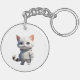 A Keychain with this charming kitty design is perfect for any animal lover. This design features a cute cartoon kitty wearing a cool hooded jacket and pants, making it a stylish and playful graphic.