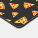 Cool and fun pizza slices pattern on dark grey. Juicy vector made pizza with crunchy crust, cheese, salami, champignon mushrooms, olives and a sprinkle of oregano.