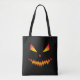 ©PLdesign Evil looking orange and yellow burning Pumpkin face. You can customise black tote bag colour!