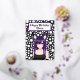 Personalised Birthday Party Invitations. Pretty purple eyed anime girl with fox ears on and purple hair and black and white polka dots background ai art.