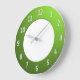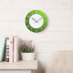 The wide and shiny metallic looking border is lime green and has a certain shadow flare to it, making the clock face look 3D. It's just an illusion, though, the clock is physically flat.