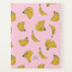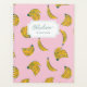 This design features a banana seamless pattern in yellow and hand drawn strokes over a pink background.