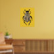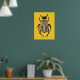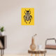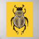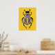Fun beetle poster with an ink illustration depicting a cartoon abstract beetle with decorative elements in white, gold and black over intense yellow background.