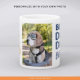 Cute Best Dog Dad Ever Birthday Gift Mug. A Personalised photo mug from your fur best friend. Celebrate with this fun and heartfelt medal typography design to say Happy Father's Day uniquely! Featuring bold blue lettering and a golden dog paw medal, this mug is the perfect way to show appreciation for the amazing dog dad in your life. Personalise it with dog or puppy picture to make it even more meaningful.