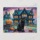 Cool Black Cat, Jack O Lanterns, Spooky House Holiday Postcard