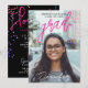 Celebrate your graduation in style with this Modern Stylish double-sided invitation! The front features a minimalist design with bold magenta pink handwritten "Graduate" in modern calligraphy, set over a large photo of the graduate, adorned with playful confetti. You can easily replace the photo and text with your own. The back includes a large "Hooray!" in magenta pink handwritten typography on an elegant black background, with black and white modern fonts for party details, and pink script for the name. All elements are set against a chic black backdrop. Digital download format is also available for your convenience.
