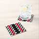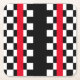 Fun beverage coasters with cool contemporary auto racing checkers flags design with red no-go stripes. Whimsical hipster design for the stylish race car sport lover.