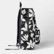Fresh backpack design features a colourful floral pattern in cool black and white with grey accents. The flowers repeat on the front, top and sides. Contact me by Zazzle message with questions or custom colour requests.