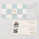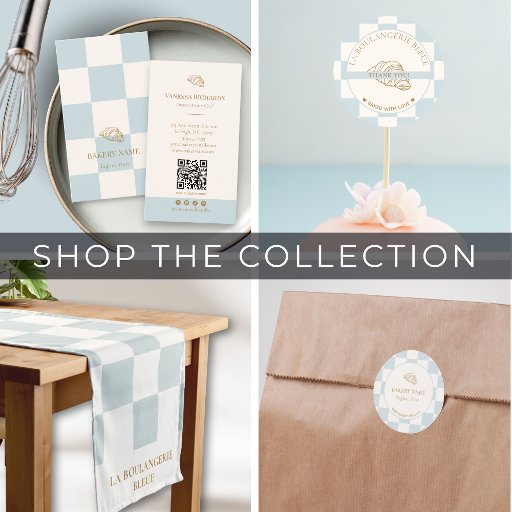 Elevate your bakery's branding with our checkered blue & ivory bakery business card. A perfect photo business card for cafes, bakeries. patisseries or micro bakery brands, this light pastel blue and cream bakery business card is a must-have for creating a lasting impression. Card features a checkered pale blue and off white with gold text. The back features your bakery contact information, your photo and custom QR code. If bringing your own logo you can edit the croissant logo to your own logo in seconds and update all text before placing your order. Make a statement with every interaction and let your business card speak volumes about your bakery’s dedication to quality and style. Update your business packaging with this custom French blue checkered business card.