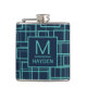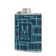 Cool Blue Geometric Grid Pattern Monogrammed Flask