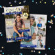 Cool 2 in 1 magazine cover graduation invitation and announcement featuring a photo of your son on the cover, along with six more photos on the back. The graduation party invitation features GRAD as the magazine title along with his name, and party details, and the year as an overlay atop his photo with gold foil details. On the back, add more photos and perhaps an inspiring quote.