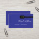 A stylish professional blue colour card with basic information... your name (white script font style) with custom music occupation (teacher) and the image of a graphic guitar neck... and address, email and phone at the back...