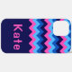 A monogrammed phone case featuring a bright, colourful pattern design of blue and pink chevrons. Create the perfect customised gift by clicking the “personalised” button to add a name or custom message in the provided template field. Select the “click to customise further” link to change the font, text size and more.