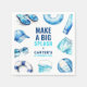 This cool blue boy birthday napkin oozes Summer Vibes! Designed with modern watercolor swimming and beach accessories illustrations in shades of vibrant turquoise and trendy navy blue. The fun text reads, 'Make a big Splash' at (add name & age) Birthday Bash! Perfect for pool parties, beach celebrations, splashparks or backyard bbq's!
