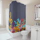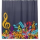 Perfect for the musician or the music lover, this eye-catching shower curtain in fashionable reflecting pond blue is complemented with an array of mixed colour rainbow musical notes at the bottom to give a modern stylish lift to any contemporary background setting. Background colour can be changed via the customise button