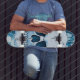 Colorful blue skull is a cool skateboard that everyone wants love.