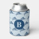 Cool navy blue swordfish pattern on light blue monogrammed can cooler.