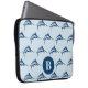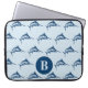 Cool navy blue swordfish pattern on light blue monogrammed laptop sleeve.