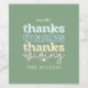 Cool blue tones text- thanks, thanks, thanks, giving - over a custom sage green background. Customisable text in pale yellow.