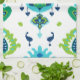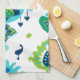 Cool bright blue and green tribal ikat print tea towel