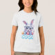 Get ready for a "spectacular" holiday with our Cool Bunny Custom Easter T-Shirt! This charming design features a lovable, wide-eyed baby bunny rocking stylish blue frames and peeking out from behind a row of colorful, speckled Easter eggs.