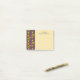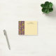 Sticky notes with a fun camping themed pattern. Set on a reddish brown background. Elements in the pattern include a campfire, a tent,. a guitar, a shovel and backpack. Personalise with a name.