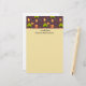 Writing paper with a pattern along the top borderand your personalised name. Designed with a fun camping themed pattern. Set on a reddish brown background. Elements in the pattern include a campfire, a tent,. a guitar, a shovel and backpack.