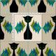 The Cool Cat Mid Century Modern Retro fabric features 1950s - 1960s style black cats with green eyes and retro diamond graphics in green and blue. The background is off-white (bone). This quality retro fabric can be used for quilt blocks, fashion and decor projects. Please see matching items in our shop.