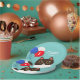 These cute birthday party paper plates feature a cute kitty with party balloons. Personalise the birthday party paper plates by adding your child's name, age, and party details.