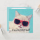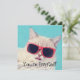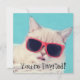 These party invites, suitable for all ages feature a photo illustration of a cute white kitty cat, who's one cool customer with his rocking red shades. The cards have a bright aqua blue coloured background. Use the fill in the blank fields to customise these cards with your party info or whatever message you choose.