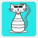 Hip and cool design of a cartoon cool cat with square dark sunglasses. This cute cartoon graphic is hipster grunge mod style against a stylish modern sky blue background.