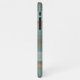 Classy, fun, contemporary mocha brown, beige, teal blue-green, and grey striped watercolor pattern design on faux leather texture background. Room for customisation or personalisation with a name, monogram, or initials of your choice. A stylish, original, and cool cover for the savvy, art-loving hip trend who wants to protect their phone from dust, dirt, and wear and tear. Available on a variety of decorative, fashionable, artistic, trending, modern, and cool iPhone 6,7 8, X, XR, 11, 12, 13 Mini, 14, 15 Plus, Max cellphone cases. Show off your style, look fashionable, and feel stylish with a unique design on a mobile device accessory of your choice.