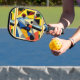 Amazing fun cute colourful geometric abstract art pickleball paddle design is popular with pickleball players.