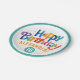 Cool Colourful Birthday Party Teal Brush Typo Paper Plate