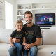 Composed of colourful pixel art blocks that combine to form a black outline, celebrating both retro gaming and fatherhood.