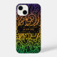 Cool unique personalised iPhone case design featuring hand drawn doodles in gradient rainbow colours on a black background. The text is fully customisable.